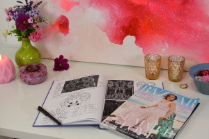 Creative space July 29, 2016 - For many years I’ve been moving around the house from my kitchen table to to other areas in our home. Never really settling anywhere. This year I decided that I really needed a good functional workspace for all my art projects. Its still a work in progress, but here are some pics from my desk area. I just wanted a simple desk area to sit and draw or flip through a book or a magazine. To spark my creativity I like to light candles and treat myself to a bouquet of fresh flowers. How do you keep your space creative?