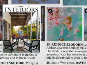 I make art for homes. My inspiration is all around me. Its in nature, in what people wear, in how people adorn their homes and my African/Swedish heritage.